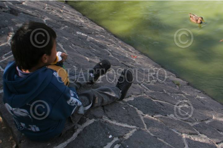 MÉXICO, D.F., 25DICIEMBRE2009.- Un niño observa los patos que se encuentran en el lago de Chapultepec este día festivo. FOTO: ENRIQUE ORDÓÑEZ/CUARTOSCURO.COM