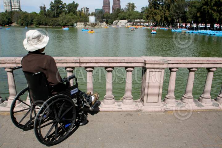 MÉXICO, D.F., 25DICIEMBRE2009.- Un señor en silla de ruedas toma un descanso observando el lago de Chapultepec. FOTO: ENRIQUE ORDÓÑEZ/CUARTOSCURO.COM