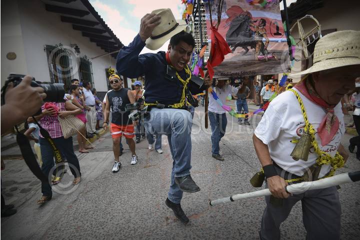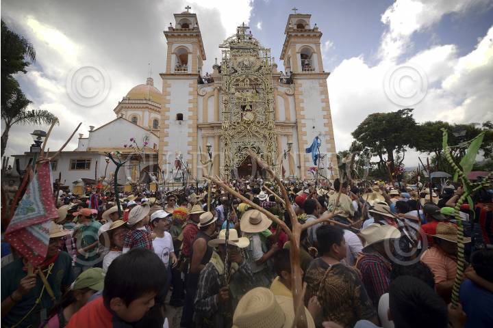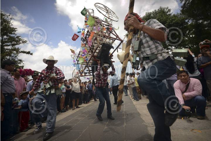 XALAPA, VERACRUZ, 20JULIO14.- Cientos de personas se dieron cita para presenciar la fiesta patronal en honor a la virgen de María Magdalena. Con toros "encuhetados" y disfrazados de payasos y otros atuendos los xiqueños entre niños y adultos conservan su tradición bailando y cargando un arco de madera con un peso de tonelada y media y 18 metros de altura, adornado con flores y conchas incrustadas, el arco es trasladado por decenas de hombres desde la parroquia de Cristo Rey hasta la catedral de María Magdalena para agradecerle según sus creencia a la santa patrona del municipio por sus milagros realizados desde que culmina la festividad hasta el inicio de la misma. FOTO: RUBÉN ESPINOSA / CUARTOSCURO.COM