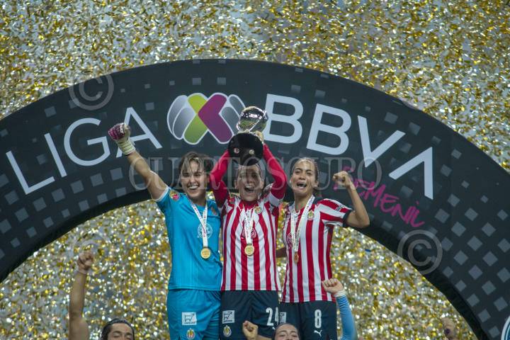 Chivas Femenil levantan la copa Campeón de Campeonas tras derrotar a las Rayadas del Monterrey en el estadio BBVA.