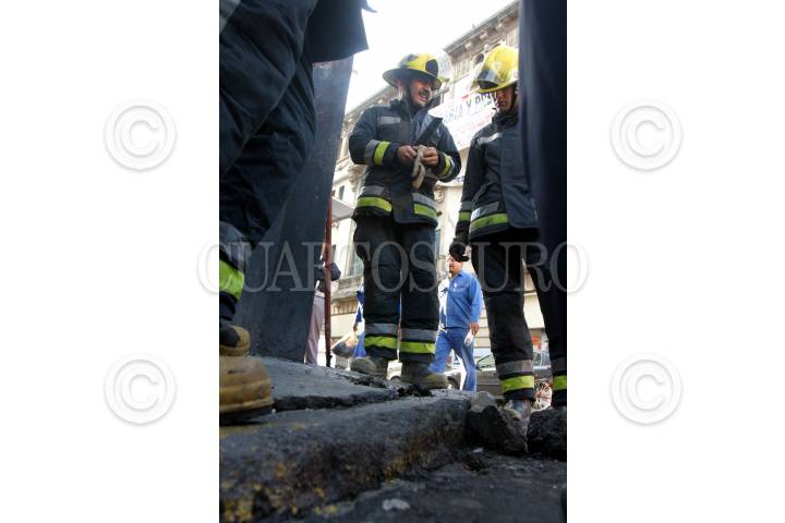 MÉXICO, D.F., 05OCTUBRE2007.- Entre las banquetas de la avenida Balderas y la calle Artículo en la colonia Centro la gente se percato que salía vapor con olor desagradable por lo que llamaron a los bomberos quienes excavaron en el sitio pero no encotraron la fuente de la peste. FOTO: PEDRO MARRUFO/CUARTOSCURO.COM