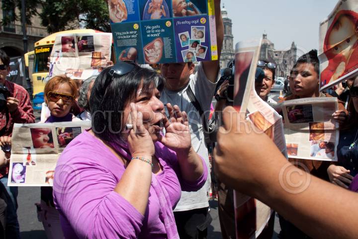 MÉXICO, D.F., 28SEPTIEMBRE2011.- Los ánimos se polarizaron entre las mujeres que protestaban por la defensa de la vida desde su concepción y de quienes defendían el derecho a la mujer para decidir sobre su cuerpo en las inmediaciones de la Suprema Corte de Justicia de la Nación. En el interior del inmueble los ministros votaron el proyecto promovido por el ministro Fernando Franco Gónzalez que intentaba rechazar esta reforma, sin embargo, la votación se dividió con 7 votos a favor y 4 en contra, por lo que no logró la mayoría que se requería para invalidarla. FOTO: MOISÉS PABLO/CUARTOSCURO.COM
