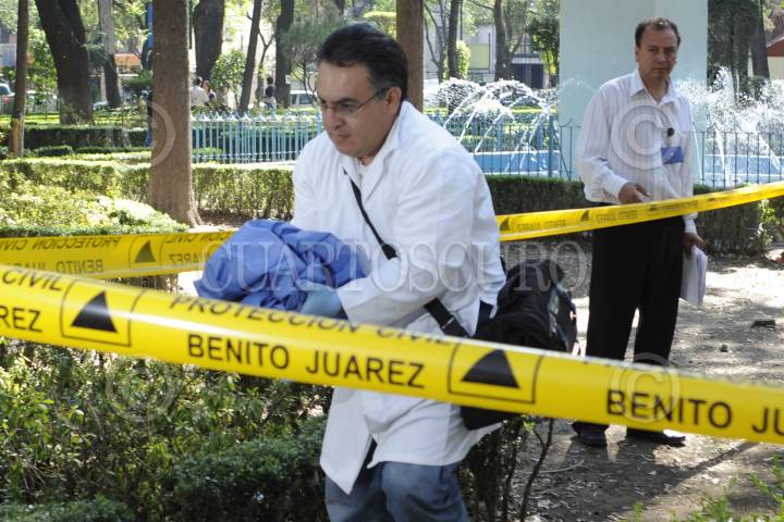 MÉXICO, D.F., 02DICIEMBRE2011.- Personal de Limpia de la Delegación Benito Juárez, hallaron un feto de aproximadamente 7 meses de gestación al interior de una bolsa entre la basura del parque ubicado en las calles Pensilvania y Georgia en la colonia Nápoles. Elementos periciales acudieron al ligar para trasladar los restos al anfiteatro en esta demarcación. FOTO: LUIS CARBAYO/CUARTOSCURO.COM
