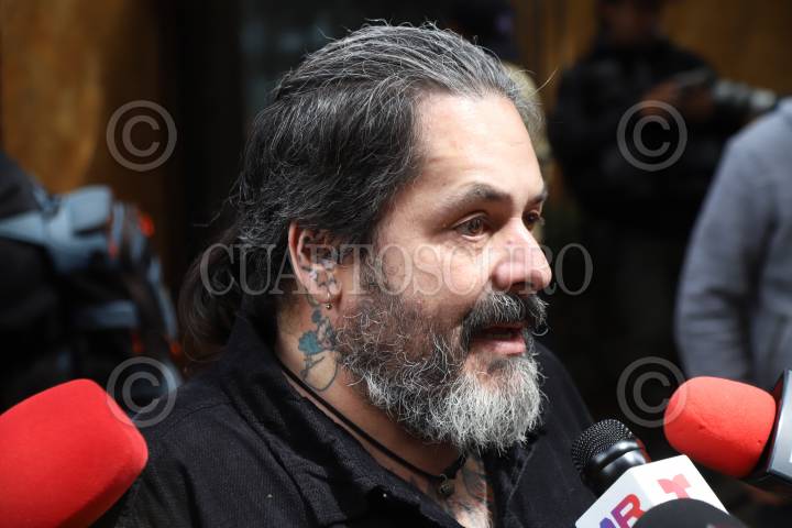 Andrés Tovar a su llegada al funeral de la conductora Talina Fernández en el que fuera si domicilio, al poniente de la Ciudad de México.