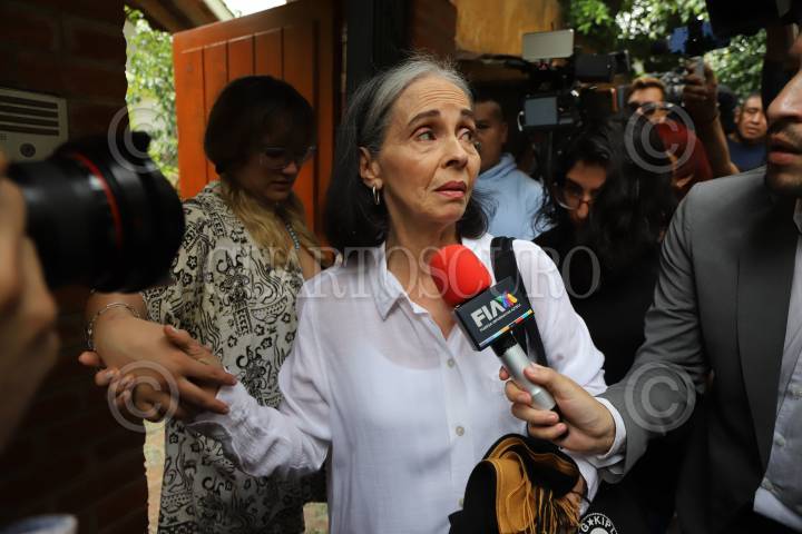Macaria a su llegada al funeral de la conductora Talina Fernández en el que fuera si domicilio, al poniente de la Ciudad de México.