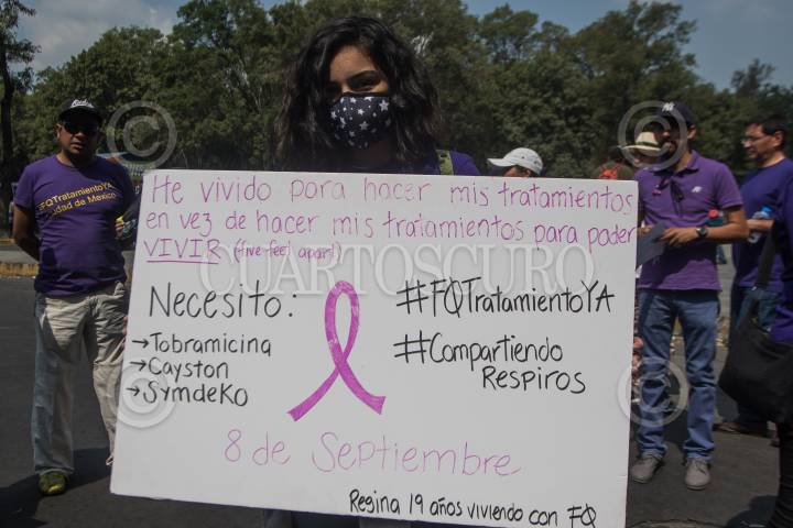 CIUDAD DE MÉXICO, 07SEPTIEMBRE2019.- Integrantes del "Movimiento Nacional FQ (Fibrosis Quística) ¡Tratamiento Ya!" se manifestaron en la Secretaría de Salud, en el marco del Día Mundial de la Fibrosis Quística y en demanda de acceso gratuito a sus tratamientos. FOTO: ISAAC ESQUIVEL /CUARTOSCURO.COM