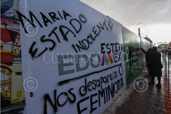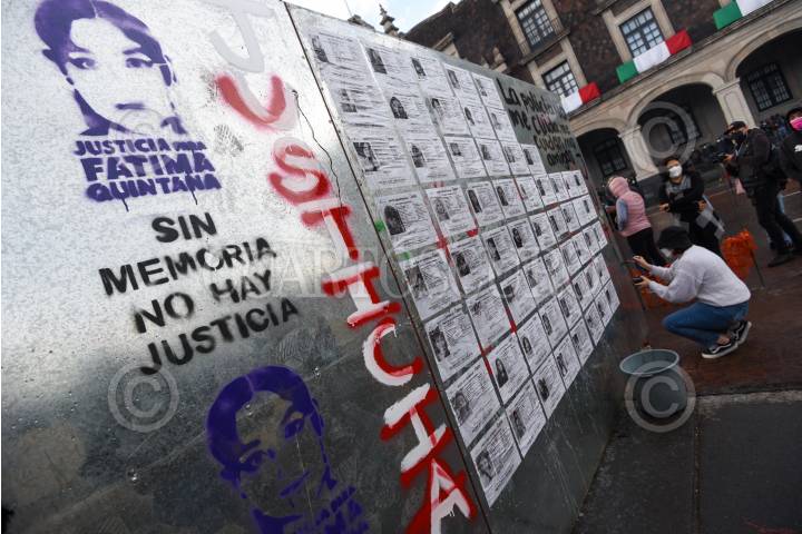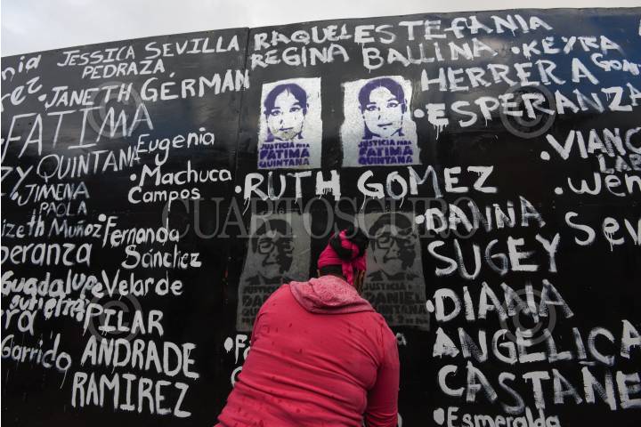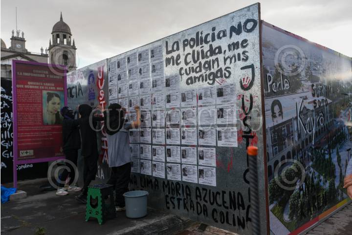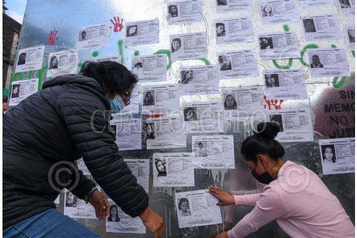 Colectivas feministas recordaron a víctimas de feminicidio y mujeres desaparecidas en los memoriales instalados en la Plaza de los Mártires.