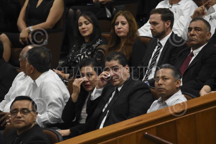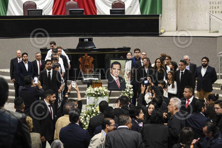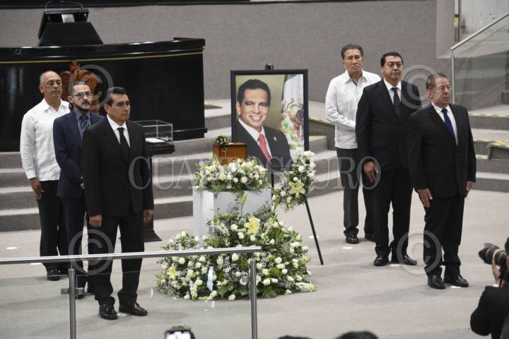 XALAPA, VERACRUZ, 11MAYO2025.- Con aplausos y lágrimas, así llegó la urna con las cenizas del ex gobernador Fidel Herrera Beltrán al Congreso de Veracruz, donde se realizó un homenaje en su memoria. Su hijo, Javier Herrera Borunda dio unas palabras a los presentes. Políticos no pudieron contener las lágrimas al despedirlo. FOTO: YERANIA ROLÓN/CUARTOSCURO.COM