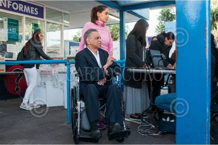CIUDAD DE MÉXICO, 01JULIO2018.- Fidel Herrera, exgobernador de Veracruz, acudió a la casilla especial ubicada en el Hospital General. Debido a que no se formó para poder votar, la gente empezó a gritarle al grado en el que se tuvo que retirar sin poder sufragar. Herrera sufrió un derrame cerebral en marzo pasado. Su esposa Rosa Borunda lo acompañó y también recibió gritos de protesta. FOTO: DIEGO SIMÓN SÁNCHEZ CUARTOSCURO.COM