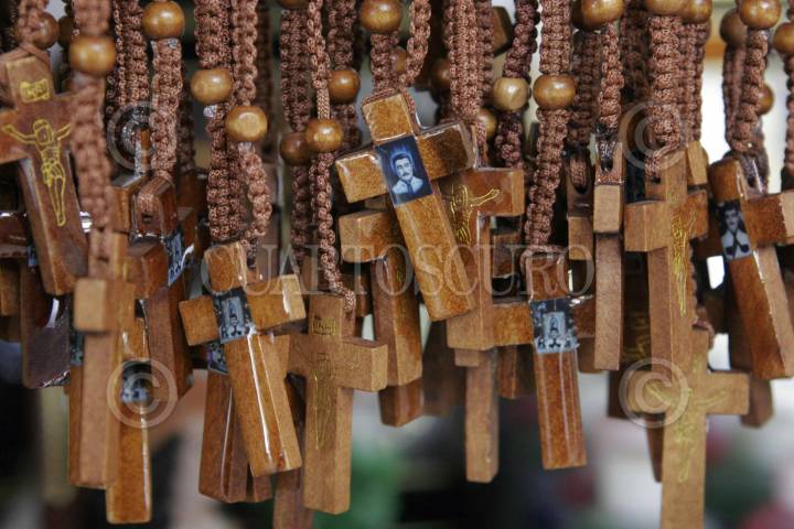 CULIACÁN, SINALOA, 05MAYO2009.- Rosarios con la imagen de Jesús Malverde se venden en los negocios de la capilla previo al festejo de sus 100 años. FOTO: IVAN STEPHENS/CUARTOSCURO.COM