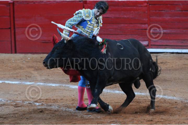 CIUDAD DE MÉXICO, 28ENERO2024.-El torero José lito Adame, lidia con un toro durante la reapertura de la Plaza México, luego del permiso emitido por la Suprema Corte de Justicia, la cual impedía las corridas desde junio del 2022. FOTO: DANIEL AUGUSTO /CUARTOSCURO.COM