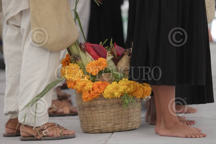 TEHUACÁN, PUEBLA 18OCTUBRE2012.- Con bailes regionales y algunos rituales ancestrales, dió comienzo el festival del Mole de Caderas, en el que oficialmente se abre la temporada para el sacrificio de chivos, del que sus caderas son cocinadas con verduras de la temporada para elaborar el platillo con ese nombre. Precediendo a la celebración del día de muertos, esta celebración data de la época colonial en la que los gobernantes daban permiso a los pobladores para sacrificar el exceso de ganado caprino, no solo en Tehuacán, sino en toda la región que abarca todo el valle de Tehuacán hasta Huajuapan de León, en Oaxaca. FOTO: JUAN PABLO ZAMORA /CUARTOSCURO.COM