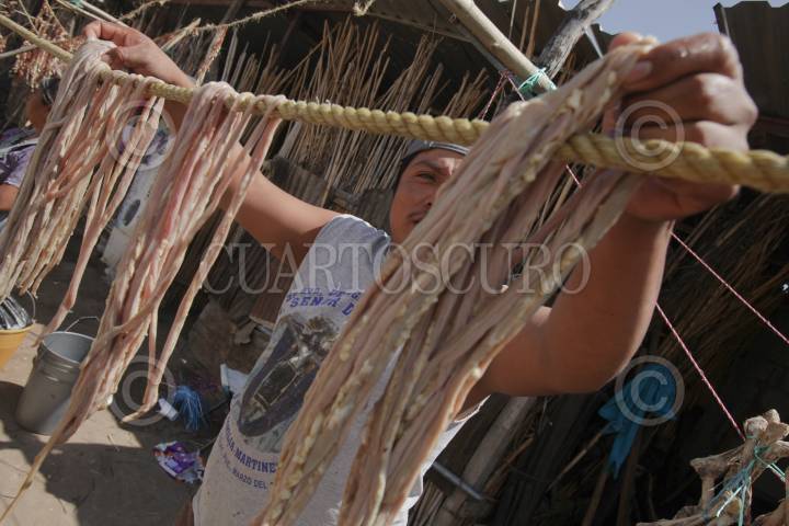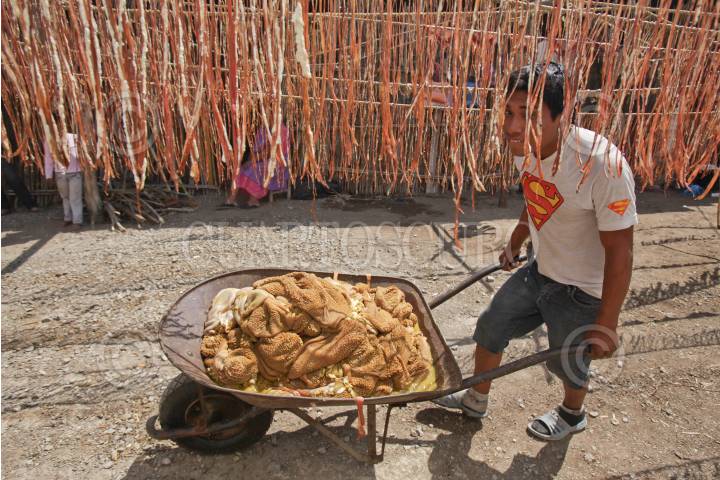 TEHUACÁN, PUEBLA 18OCTUBRE2012.- Los llamados "matanceros", que sacrifican chivos, la mayoría procede de Huajuapan, Oaxaca. Al final del sacrificio se quedan con las visceras, patas y brazos que sus familias venden a un costado de la hacienda La Carlota, donde se sacrifica el ganado para la venta de las caderas con las que se elabora el "mole de Caderas". Ellos habitan estas casas de carrizo y laminas de cartón de manera temporal durante la temporada para el sacrificio de chivos. Esta migración precede, al igual que la tradición del mole de caderas, de la época colonial en la que los gobernantes daban permiso a los pobladores para sacrificar el exceso de ganado caprino. FOTO: JUAN PABLO ZAMORA /CUARTOSCURO.COM