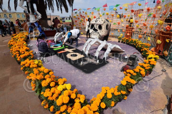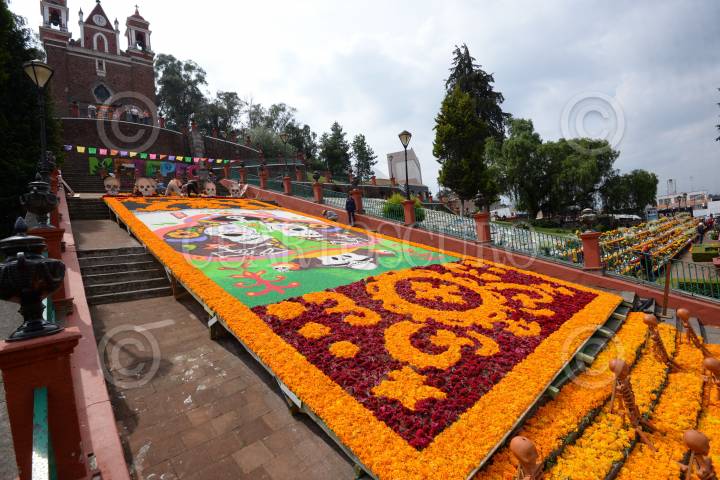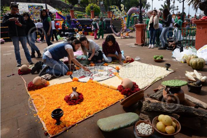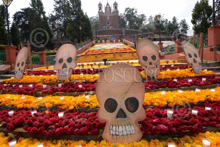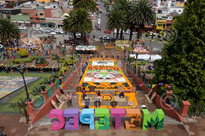 METEPEC, ESTADO DE MÉXICO, 31OCTUBRE2017.- La mega ofrenda de Día de Muertos del municipio quedó instalada por completo en las escalinatas de la iglesia del Calvario. FOTO: ARTEMIO GUERRA BAZ / CUARTOSCURO.COM