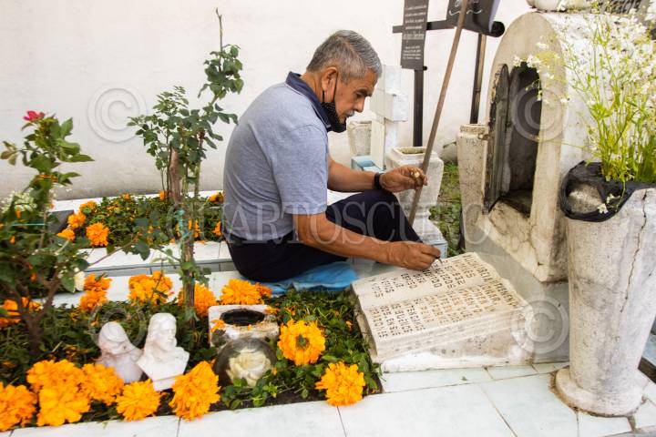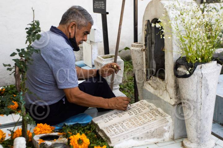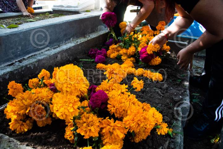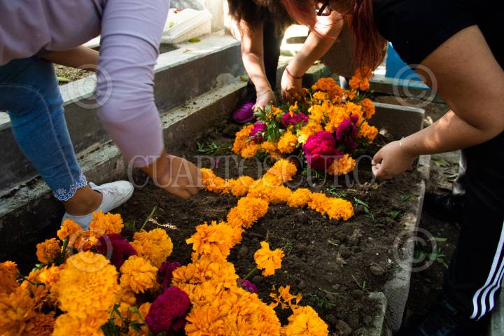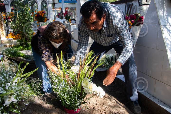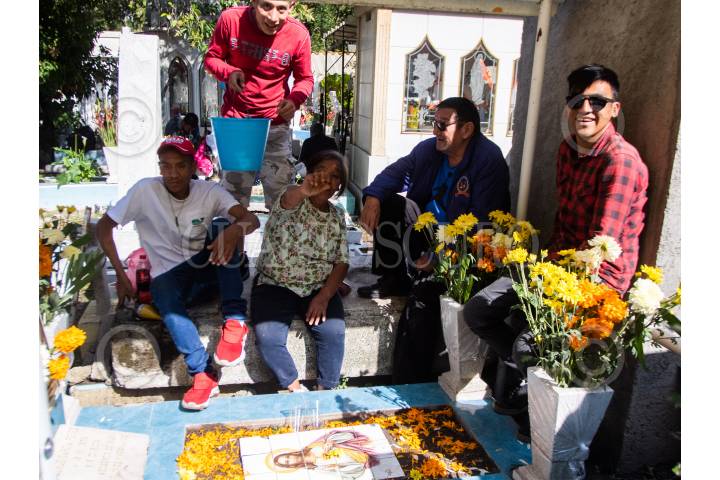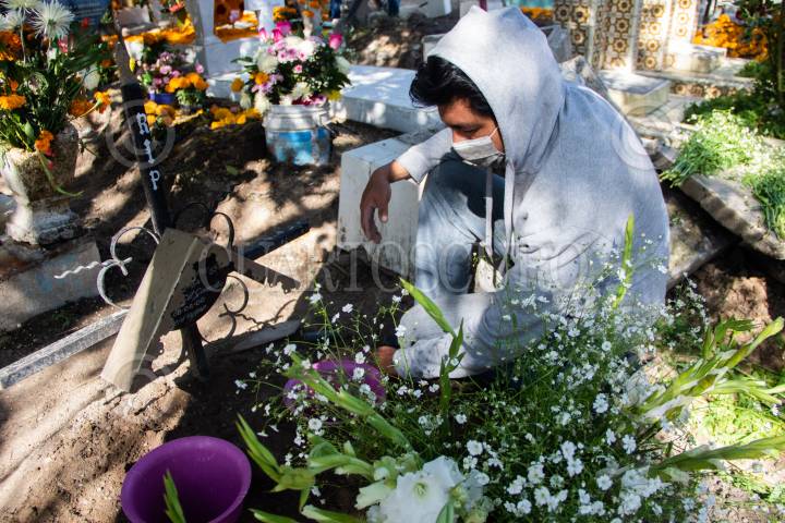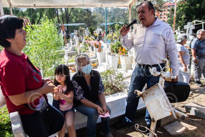Visita de gente en el panteón de Santa Fé, a seres queridos en el dia de los fieles difuntos.