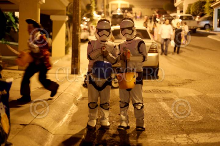TIJUANA, BAJA CALIFORNIA, 31OCTUBRE2015.-Las calles de la ciudad se llenaron de fantasmas, monstruos y brujas con motivo del tradicional Hallowen. Desde aproximadamente las 18:00 horas, niños acompañados de sus padres empezaron a desfilar por domicilios con el propósito de pedir dulces en casas que estuvieran adornadas de acuerdo a la festividad. FOTO CHRISTIAN SERNA/CUARTOSCURO.COM