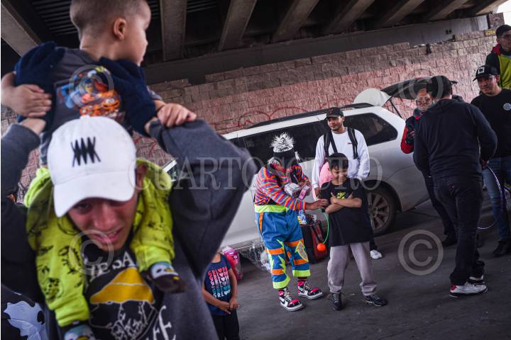 IRAPUATO, GUANAJUATO, 06ENERO2025.- Migrantes provenientes, en su mayoría, de Venezuela, pasan el Día de los Reyes Magos esperando a que pase el tren conocido como "La Bestia", bajo un puente de la ciudad, con la esperanza de subirse en este y avanzar en su camino al norte del continente. FOTO: PEDRO ANZA /CUARTOSCURO.COM