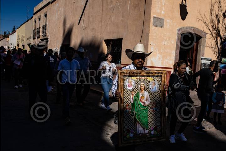 Desde la tarde del 27 de octubre, cientos de devotos de "San Juditas" caminan 66 kilómetros para llegar a la Parroquia de San Judas Tadeo, en el municipio de Villanueva, y festejar el 28 de octubre. Esta año se pudieron observar más peregrinos después de haber sorteado la Pandemia y existir las condiciones de salud para permitir las aglomeraciones en espacios públicos y recintos religiosos. A lo largo de la carretera No 54 Zacatecas-Villanueva, niños, jóvenes y adultos mayores realizaban el recorrido a pie o en bicicleta, llevando la figura física en sus manos, en una playera, en una estampilla, un tatuaje o con un simple escapulario, el santo de los desamparados o causas perdidas.