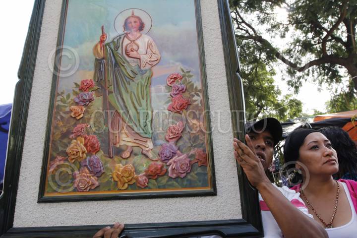 MÉXICO, D.F. 28OCTUBRE2012.- Fieles a San Judas Tadeo llegaron desde la madrugada de ayer a la Iglesia de San Hipólito para rendir culto a su santo como cada 28 del mes, siendo esta la fiesta más grande por ser el aniversario del santo. FOTO: JOYCE GARCÍA /CUARTOSCURO.COM