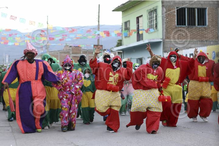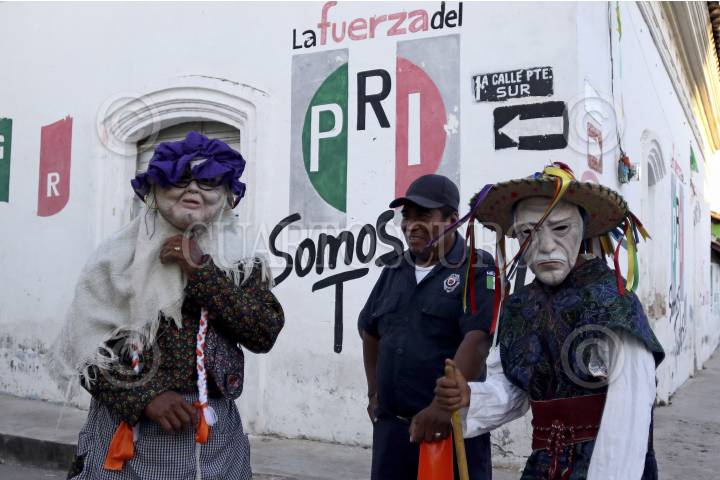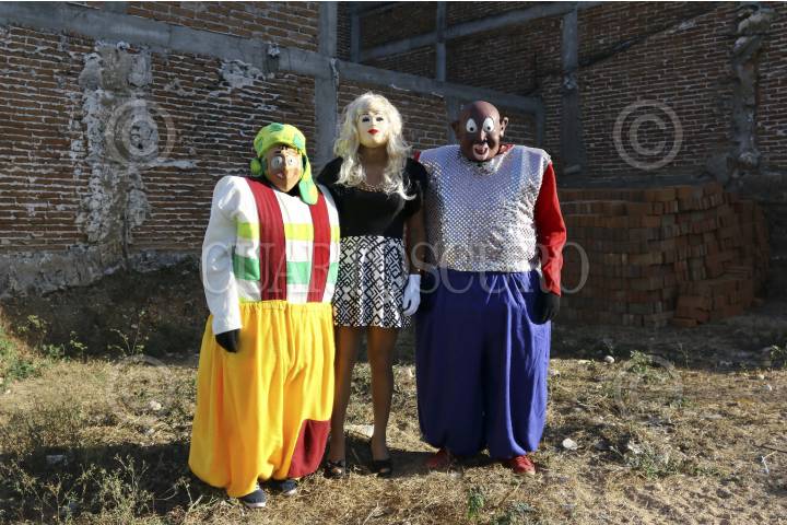 SUCHIAPA, CHIAPAS, 21ENERO2017.- La viejada (hombres y niños disfrazados de mujeres), parachicos, "toritos" y "los panzudos" (personas disfrazadas de personajes de la farándula y de la vida social) danzan en las principales calles de la ciudad y realizan el recorrido en honor a San Sebastián Mártir. FOTO: JESUS GARCIA /CUARTOSCURO.COM