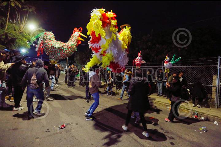 Habitantes del barrio de La Cañada realizaron la fiesta del Gallo, cómo parte de un festejo previo a las fiestas por la Virgen de Guadalupe.