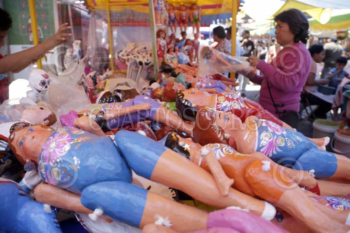 PUEBLA, PUEBLA, 15JUNIO2017.- El día de hoy se celebró en México el "Día de las Mulas", fiesta religiosa tradicional del Corpus Christi, en la que según algunos historiadores, los hacendados llegaban con sus mulas cargados de la primera cosecha del año para ofrecerla como diezmo a la iglesia; por lo que en esta fecha se acostumbra a regalar una mulita o un panzón hechos de barro o papel a manera de sátira. FOTO: HILDA RIOS /CUARTOSCURO.COM