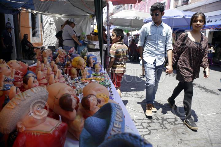 PUEBLA, PUEBLA, 31MAYO2018.- El día de hoy se celebró en México el "Día de las Mulas", fiesta religiosa tradicional del Corpus Christi, en la que según algunos historiadores, los hacendados llegaban con sus mulas cargados de la primera cosecha del año para ofrecerla como diezmo a la iglesia; por lo que en esta fecha se acostumbra a regalar una mulita o un panzón hechos de barro o papel a manera de sátira. FOTO: HILDA RIOS /CUARTOSCURO.COM