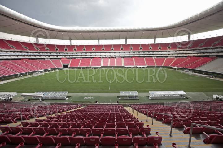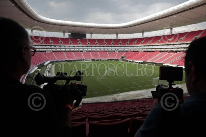 ZAPOPAN, JALISCO. 23MAYO2025.- Esta mañana se llevo a cabo un recorrido por el Estadio Guadalajara, esto con el fin de mostrar los avances que se llevan para cumplir con los estándares de la FIFA rumbo a la Copa Mundial FIFA 2026. Y desde el 12 de Mayo comenzó la renovación total de la cancha, componente clave en la preparación del recinto y su entrega esta prevista para el 10 de Julio. FOTO: FERNANDO CARRANZA GARCIA / CUARTOSCURO.COM