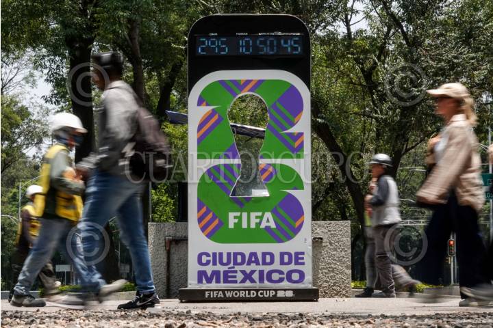CIUDAD DE MÉXICO, 19AGOSTO2025.- Continúa la cuenta regresiva del reloj mundialista instalado en Paseo de la Reforma frente al Auditorio Nacional. Al momento, faltan 295 días para que el mayor evento de fútbol llegue a nuestro país. FOTO: GALO CAÑAS/CUARTOSCURO.COM