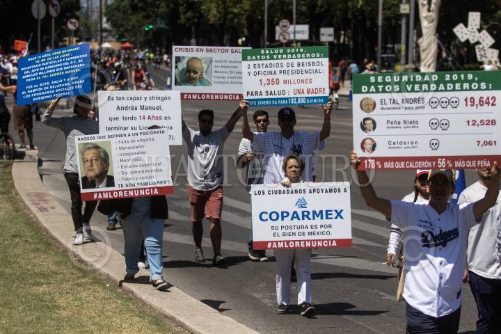 CIUDAD DE MÉXICO, 01SEPTIEMBRE2019.- Alrededor de dos mil personas marcharon del Ángel de la Independencia al Monumento a la Revolución, en contra del gobierno de Andrés Manuel López Obrador, en el marco del Primer Informe de Gobierno. FOTO: ISAAC ESQUIVEL /CUARTOSCURO.COM