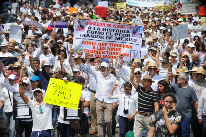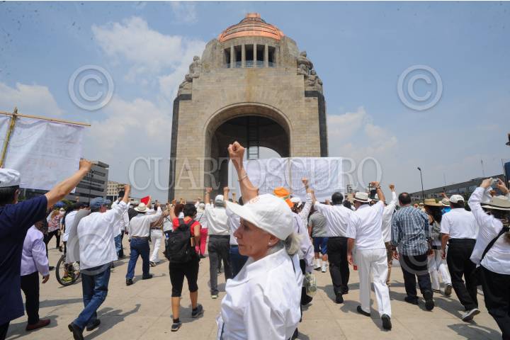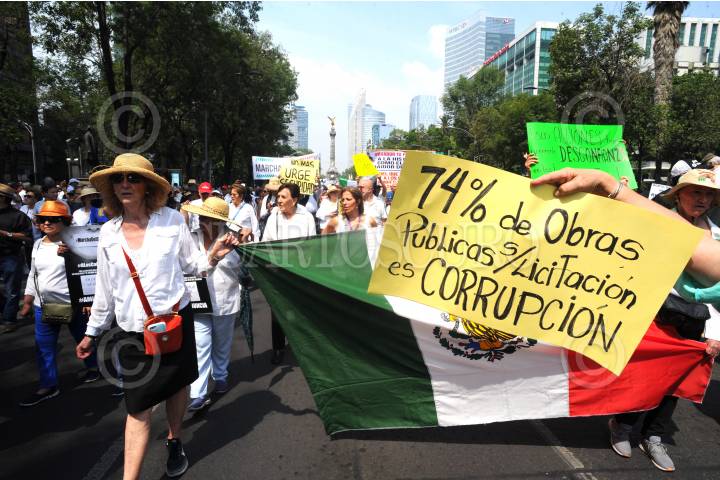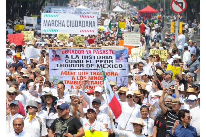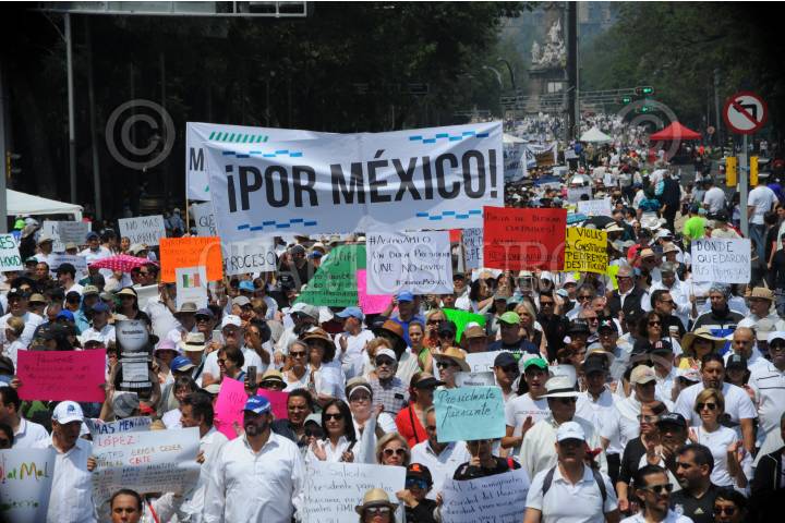 CIUDAD DE MÉXICO, 05MAYO2019.- Ciudadanos marcharon para mostrar su desacuerdo en contra de varias decisiones de gobierno del Presidente de México, Andrés Manuel López Obrador, entre las demandas están la supuesta falta de transparencia en las licitaciones públicas; sus nominaciones para ocupar ministros de la SCJN; sobre el tema de la Guardia Nacional, la reasignación de recursos en la estancias infantiles, entre otros. Los inconformes quienes en su mayoría vestían de blanco marcharon del Ángel de la Independencia al Monumento a la Revolución. FOTO: ARMANDO MONROY /CUARTOSCURO.COM