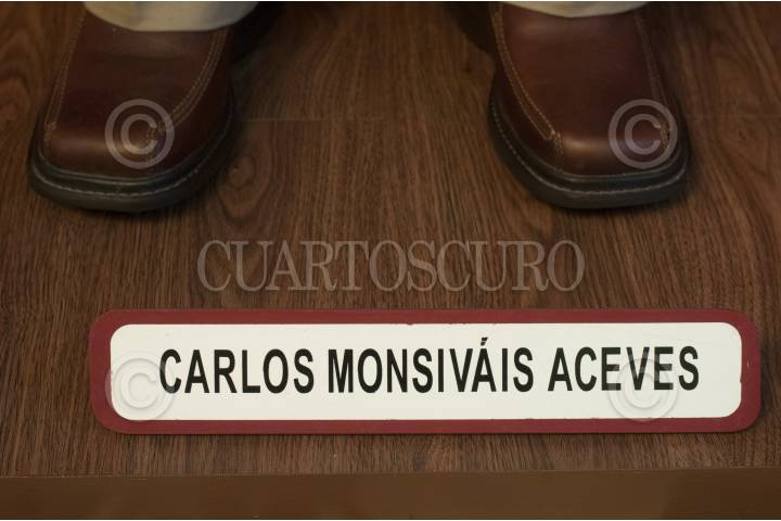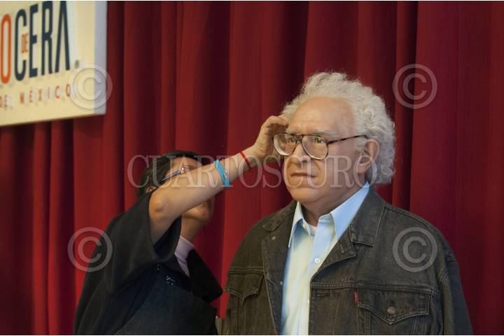 MÉXICO, D.F., 29ENERO2013.- La figura del escritor Carlos Monsiváis fue colocada en la primera sala del Museo de Cera de la Ciudad de México desde el viernes pasado y ya forma parte del acervo del recinto. Los familiares de Monsiváis colaboraron con la creación describiendo al cronista y donaron los lentes que luce la pieza de cera. FOTO: DIEGO SIMÓN SÁNCHEZ /CUARTOSCURO.COM