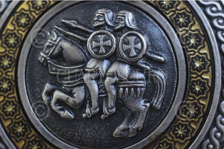 ANTUNEZ, MUGICA, MICHOACÁN, 24ENERO2014. Los Caballeros Templarios crearon su escudo, como lo hicieron Los Caballeros de la Orden del Temple: adaptado de símbolos medievales es púrpura y tiene en la parte superior una corona con una flor de lis al centro, flanqueada por puntas de lanzas como las utilizadas por la caballería del medievo. FOTO: JUAN JOSÉ ESTRADA SERAFÍN /CUARTOSCURO.COM