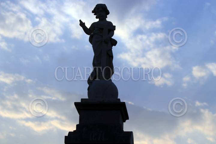 CUAUTLA, MORELOS, 11ABRIL2019.-Una figura religiosa antigua en una tumba del panteón de esta ciudad. FOTO: MARGARITO PÉREZ RETANA /CUARTOSCURO.COM