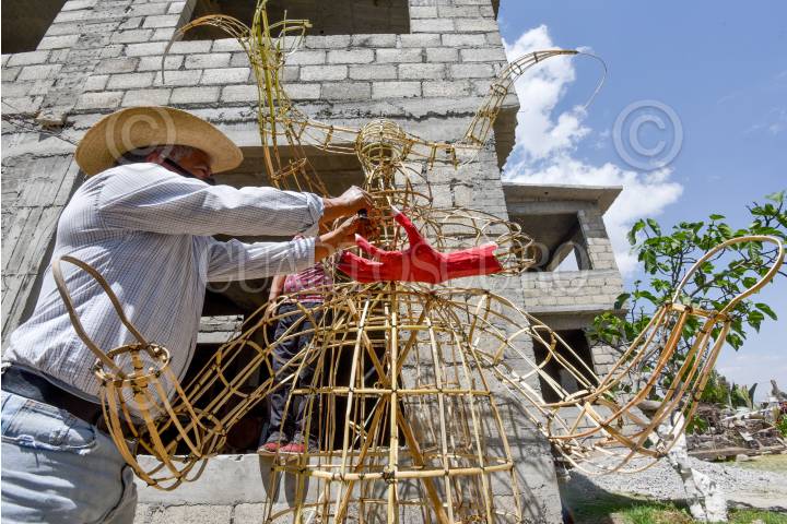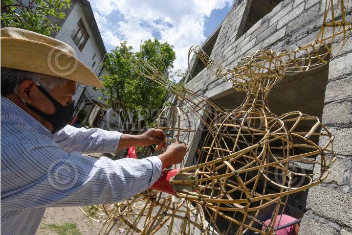 Marcelino Medina Galván, originario de San Mateo Tlachichilpan en Almoloya de Juárez, junto con su familia se encuentran trabajando su pieza para poder participar en el tradicional concurso de Judas, que por la pandemia de COVID-19 ha sufrido diversas modificaciones, no habrá exposición ni quema.