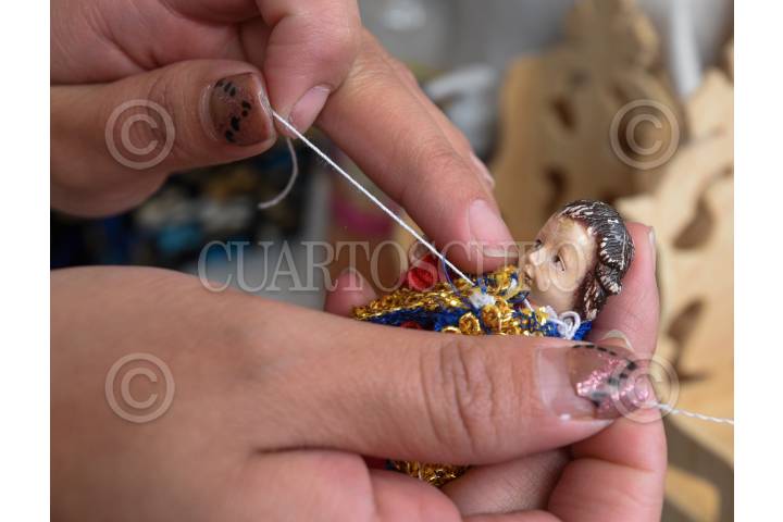 Artesanas elaborar figuras religiosas para ser colocadas en los nacimientos esta navidad.
