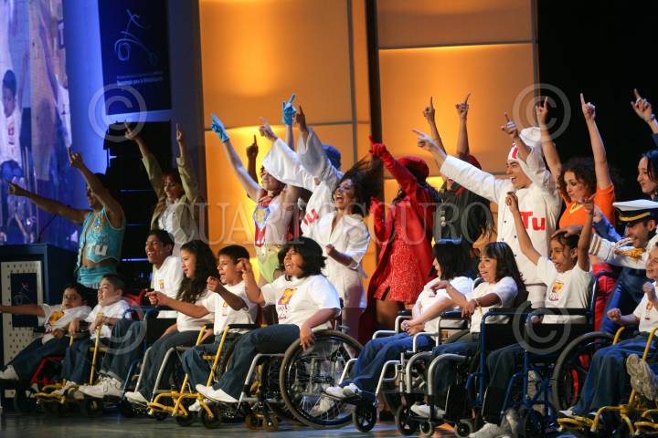 MÉXICO D.F., 14AGOSTO2008.- El coro Teletón participó en la ceremonia de inauguración del Octavo Congreso Internacional de Rehabilitación Infantil ORITEL. FOTO: ISAAC ESQUIVEL/CUARTOSCURO.COM