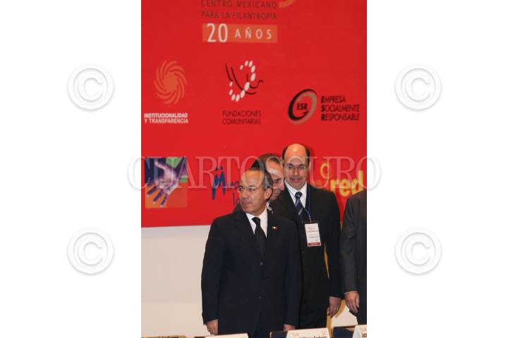 MÉXICO D.F., 10NOVIEMBRE2008.- El presidente, Felipe Calderón Hinojosa, acompañado de su esposa Margarita Zavala, acudió esta mañana a la inauguración de los trabajos del Centro Mexicano de la Filantropía (CEMEFI) esto dentro del marco de la conmemoración del 20 aniversario de su fundación. FOTO: GUILLERMO PEREA/CUARTOSCURO.COM