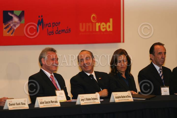 MÉXICO D.F., 14AGOSTO2008.- Fernando Landeros, presidente de la Fundación Teletón, Mario Luis Kreutzberger, presidente de la Organización Internacional de Teletones, y la primera dama Margarita Zavala, durante la inauguración del Octavo Congreso Internacional de Rehabilitación Infantil ORITEL. FOTO: ISAAC ESQUIVEL/CUARTOSCURO.COM
