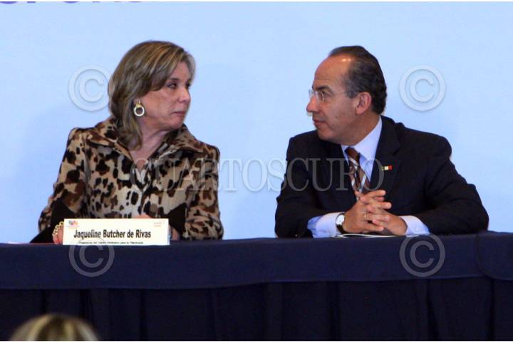 MÉXICO, D.F., 10NOVIEMBRE2009.- Jaqueline Butcher de Rivas y Felipe Calderón, Presidente de México, durante la inauguración de la Reunión Anual 2009 del Centro Mexicano para la Filantropia Solidaridad Hoy: Responsabilidad de Todos. FOTO: FRANCISCO SANTOS /CUARTOSCURO.COM
