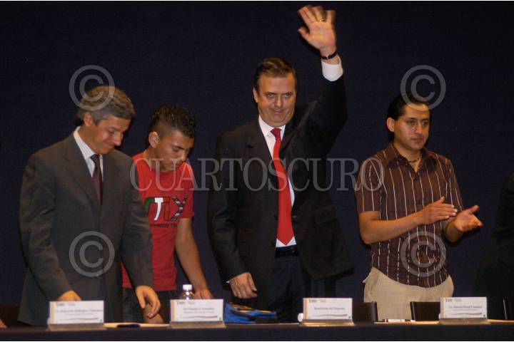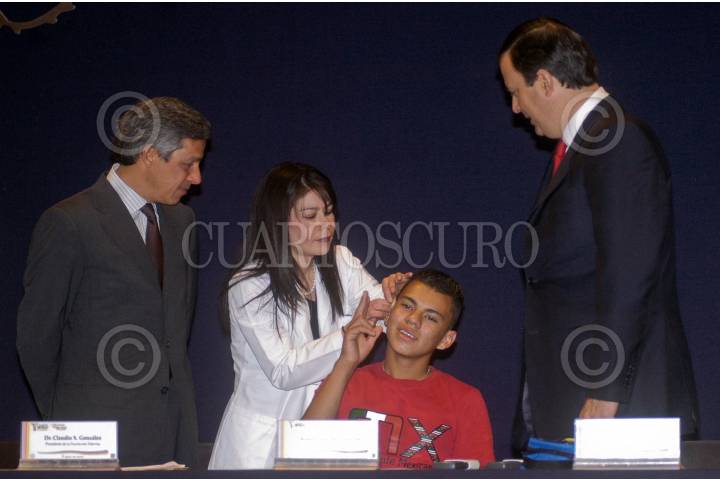 MÉXICO, D.F., 16MARZO2010.- Claudio X. González, presidente de Fundación Televisa, y Marcelo Ebrard Casaubón, jefe de Gobierno del Distrito Federal, encabezaron la entrega de 400 aparatos auditivos a personas de escasos recursos de diferentes delegaciones. FOTO: ISAAC ESQUIVEL/CUARTOSCURO.COM