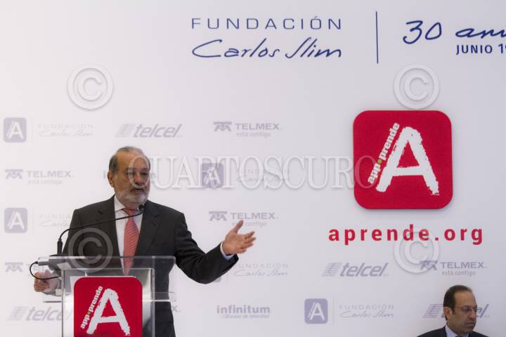 CIUDAD DE MÉXICO, 15JUNIO2016.- El ingeniero Carlos Slim Helú encabezó la presentación de la plataforma App-prende a través del portal aprende.org, en el museo Soumaya. Esta plataforma es totalmente gratuita para maestros, estudiantes, padres de familia y público en general, con contenidos gratuitos educativos, culturales y de capacitación para el empleo. FOTO: MOISÉS PABLO /CUARTOSCURO.COM