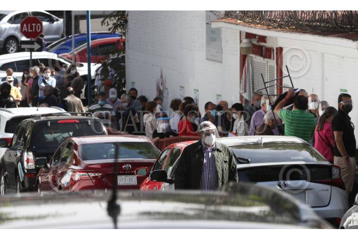 Capitalinos realizan filas de hasta hora y media para la vacunación contra COVID-19 en adultos mayores.