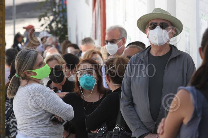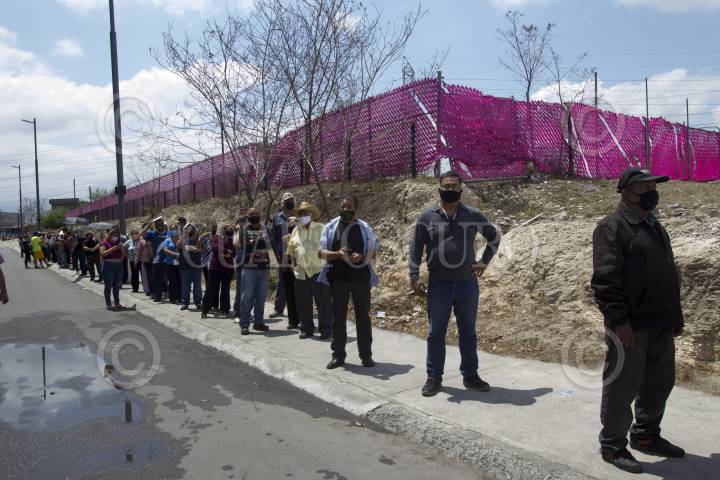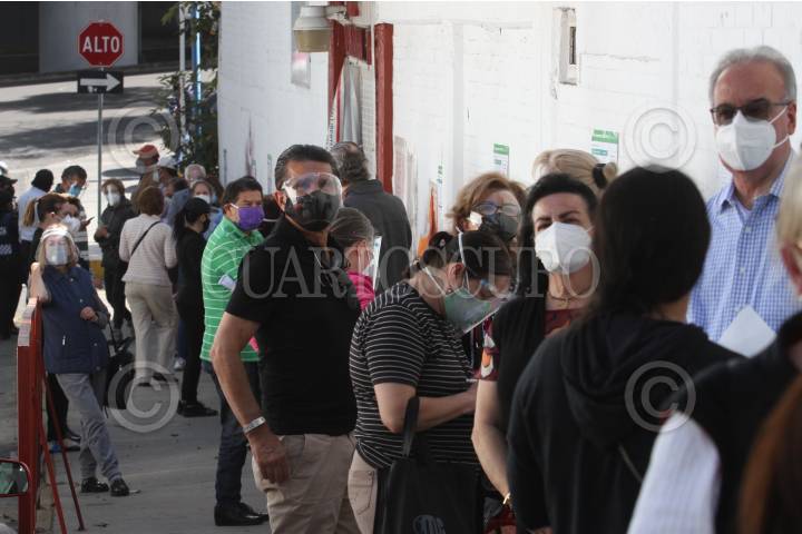 Desde tempranas horas adultos mayores esperan formados por una vacuna contra el COVID-19.