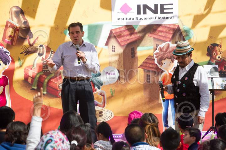 CIUDAD DE MÉXICO, 19NOVIEMBRE2018.- Lorenzo Córdova, consejero Presidente del INE, acudió a la Feria Internacional del Libro Infantil y Juvenil, y sostuvo una charla con niños en el Foro de Madera en el parque Bicentenario. FOTO: VICTORIA VALTIERRA /CUARTOSCURO.COM