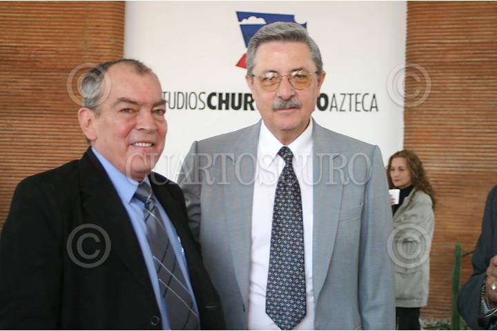 MÈXICO,D.F.4MAYO2006.- Sergio Molina, Presidente de la Comisiòn Nacional de Filmaciones Mèxico, A.C. y Mario Aguiñaga, Director de los Estudios Churubucos durante la conferencia de prensa en la que se informò que la Expo Locaciones Mèxico 2006 se llevarà a cabo del 24 al 27 de mayo, con una duraciòn de cuatro dìas en las instalaciones de los Estudios Churubusco Azteca. Foto: M. Tulia Pèrez Bocanegra/CUARTOSCURO.COM