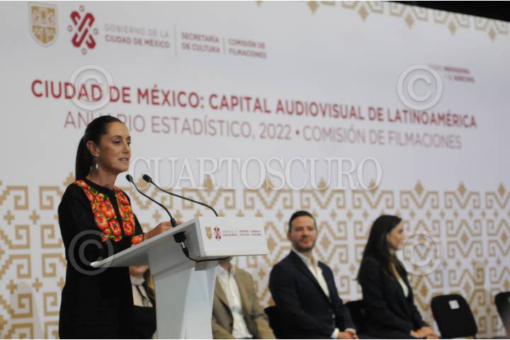 Claudia Sheinbaum, jefa de gobierno de la capital, encabezó la presentación del Anuario Estadístico 2022 de la Comisión de Filmaciones de la Ciudad de México.