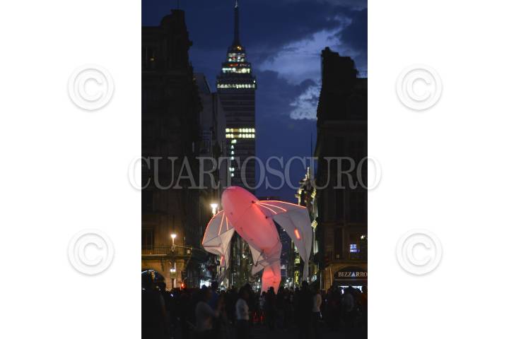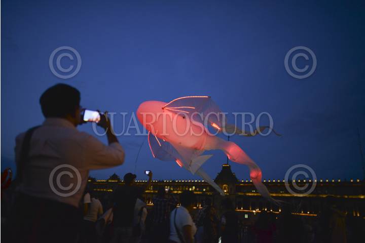 MÉXICO, D.F., 07MAYO2015.- En la Plaza de la Constitución, se presenta la creación "Los Lumineoles", de Porte Part Le vent, como parte de la segunda edición del Festival Internacional de las Luces México 2015 FILUX a realizarse del 07 al 10 de mayo de 19:00 hrs a 00:00 hrs en diferentes sedes. FOTO: ADOLFO VLADIMIR /CUARTOSCURO.COM
