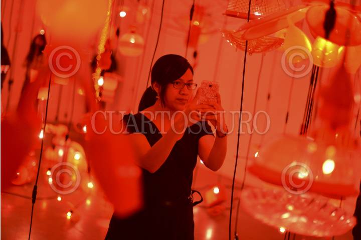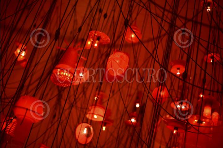 MÉXICO, D.F., 07MAYO2015.- En el Museo Interactivo de Economía, se presenta la creación "Máquina de sueños", de Alejandro Martínez, como parte de la segunda edición del Festival Internacional de las Luces México 2015 FILUX a realizarse del 07 al 10 de mayo de 19:00 hrs a 00:00 hrs en diferentes sedes. FOTO: ADOLFO VLADIMIR /CUARTOSCURO.COM
