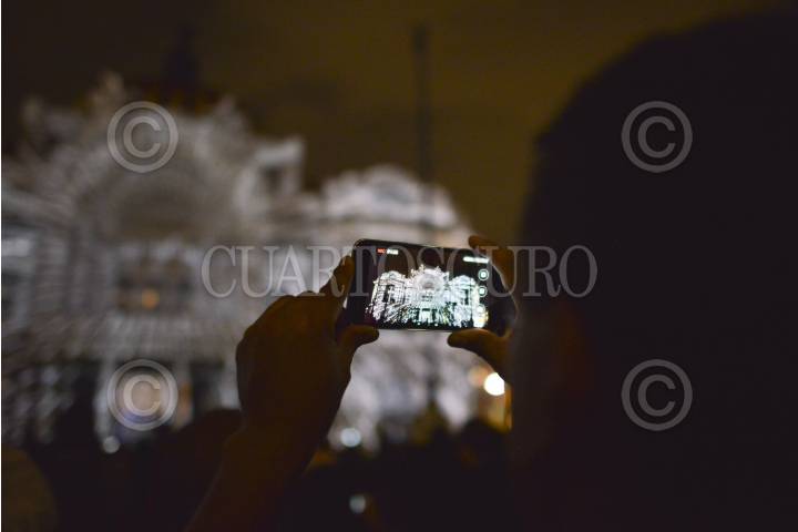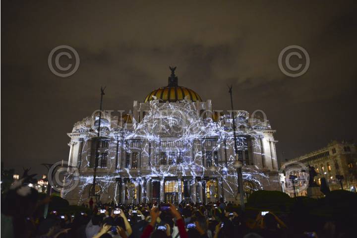 MÉXICO, D.F., 07MAYO2015.- En la fachada del Palacio de Bellas Artes, se presenta la creación "Bordos", de Laszlo Bordos, como parte de la segunda edición del Festival Internacional de las Luces México 2015 FILUX a realizarse del 07 al 10 de mayo de 19:00 hrs a 00:00 hrs en diferentes sedes. FOTO: ADOLFO VLADIMIR /CUARTOSCURO.COM